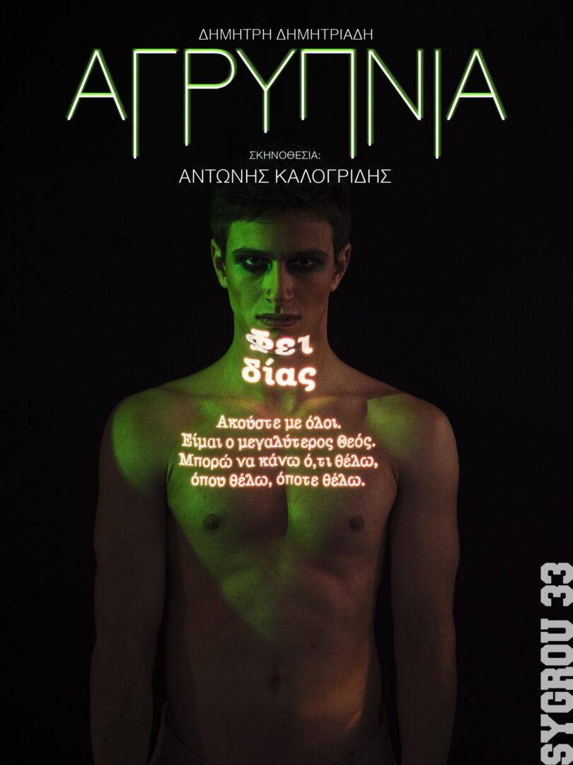 Τον Φεβρουάριο ανοίγει τις πόρτες του ένας ολοκαίνουριος χώρος, ιδιαίτερης αισθητικής, το θέατρο «Συγγρού 33» με μια παράσταση που ανεβαίνει για πρώτη φορά επί σκηνής. Ο Αντώνης Καλογρίδης σκηνοθετεί την «Αγρυπνία» του Δημήτρη Δημητριάδη, με πρωτότυπο τίτλο «Τα Δώρα της νύχτας».