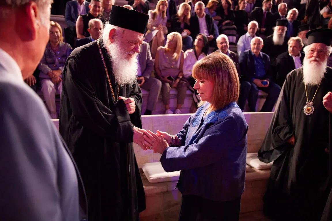 Η εκδήλωση ολοκληρώθηκε με χαιρετισμό του Μακαριωτάτου Αρχιεπισκόπου Αθηνών κ.κ. Ιερωνύμου, ο οποίος συνεχάρη και επαίνεσε την προσπάθεια των συμμετεχόντων, τονίζοντας: «Αυτό το πνεύμα που διεχύθη σήμερα σε αυτό τον χώρο, το οποίο το αναζητούμε, αλλά δεν το βρίσκουμε εύκολα, αυξάνεται περισσότερο, όταν εκδηλώνεται σε ανοικτούς χώρους και κυρίως στα σχολεία μας. Η παράδοση μας είναι τόσο μεγάλη, που δεν εξαντλείται και δεν χρειάζεται τα ξένα διδάγματα».