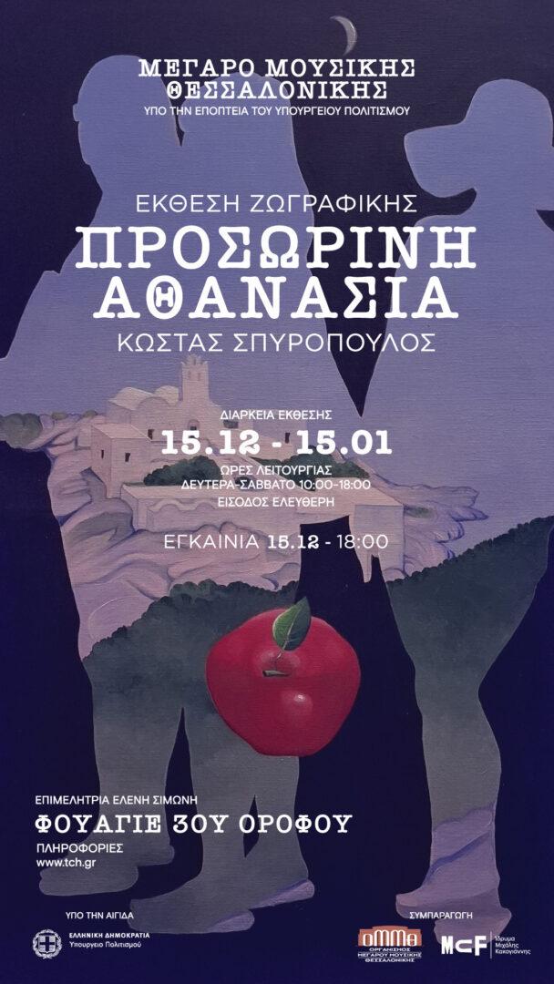 «Προσωρινή Αθανασία»: Ατομική Έκθεση Ζωγραφικής – Κωνσταντίνος Σπυρόπουλος. Ο αναγνωρισμένος εικαστικός και καθηγητής πνευμονολογίας Κωνσταντίνος Σπυρόπουλος παρουσιάζει τη νέα του ατομική έκθεση με τίτλο «Προσωρινή Αθανασία», μια ενότητα έργων όπου η τέχνη λειτουργεί ως καταφύγιο, ως μια στιγμή υπέρβασης του χρόνου. Γιατρός και δημιουργός ταυτόχρονα, ο Σπυρόπουλος εξερευνά, μέσα από τη ζωγραφική του, εκείνη την αίσθηση «μικρής αιωνιότητας» που χαρίζει η επαφή με το καλλιτεχνικό έργο.