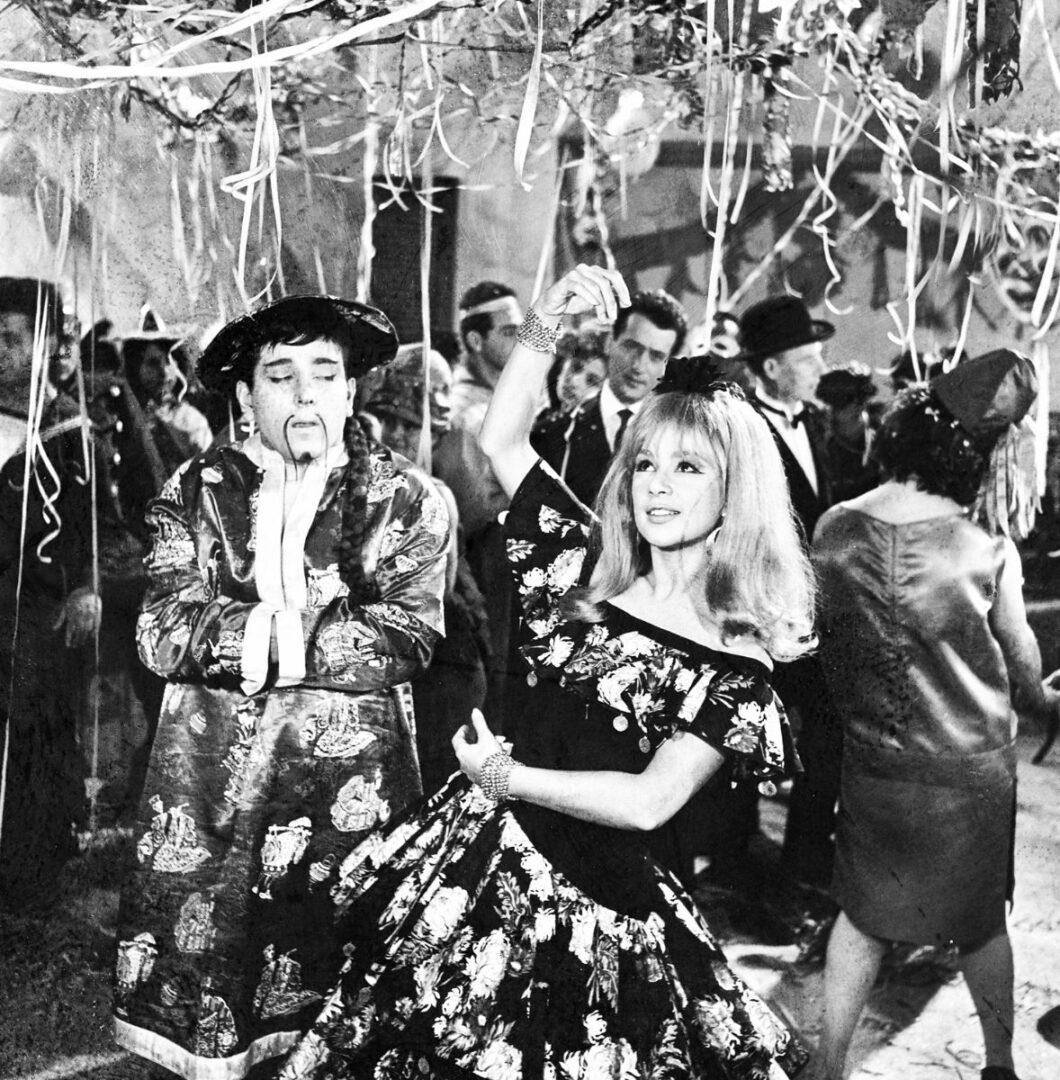 Κώστας Βουτσάς και Αλίκη Βουγιουκλάκη σε πάρτι μασκέ στην ταινία «Η ψεύτρα» (1963).