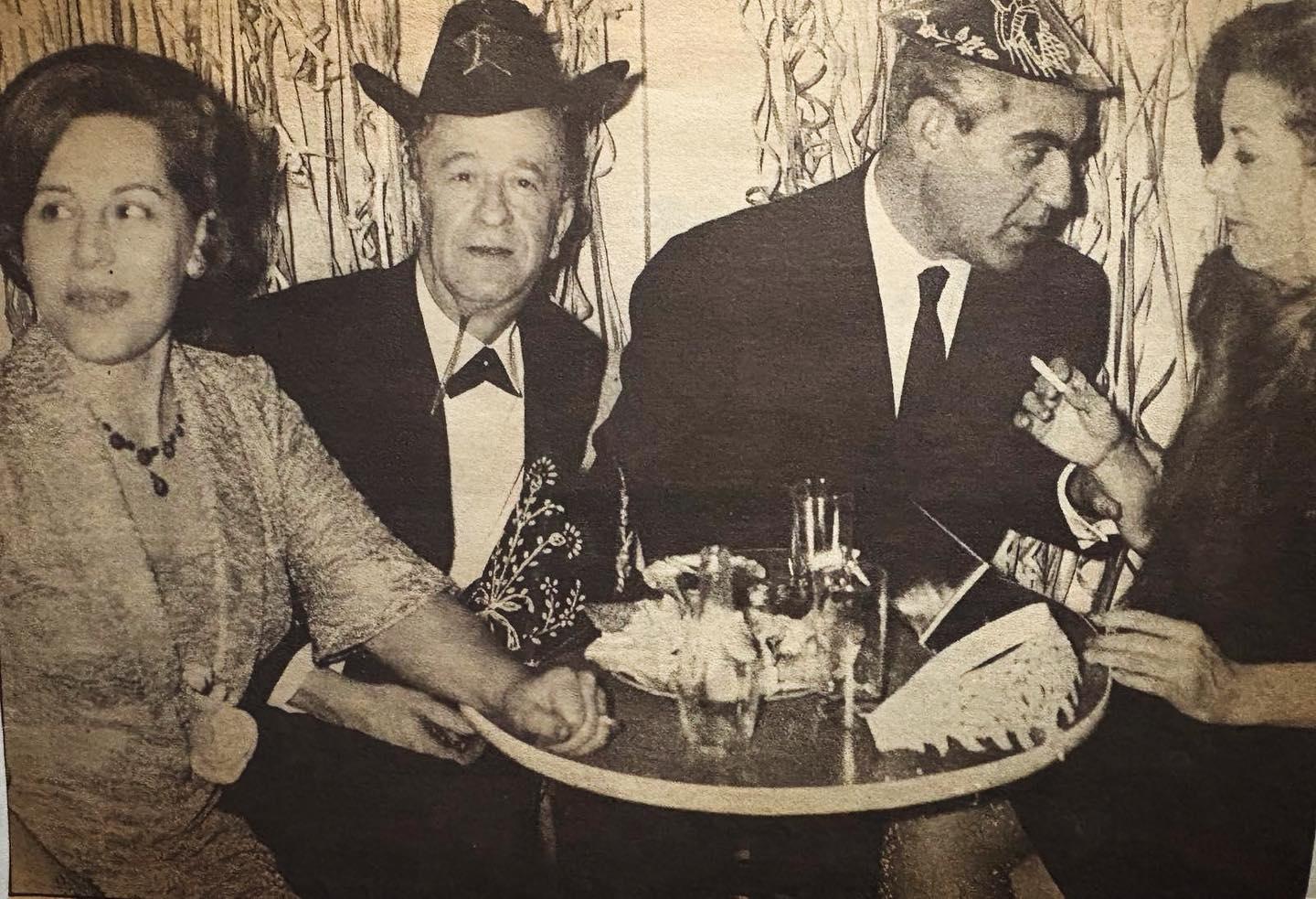 Από αποκριάτικο χορό της Δραματικής Σχολής Αθηνών, το 1967. Ο αξέχαστος Μίμης Φωτόπουλος με τη σύζυγό του Μαργαρίτα, τον Γιώργο Βέμπο και την Γκέλυ Μαυροπούλου.