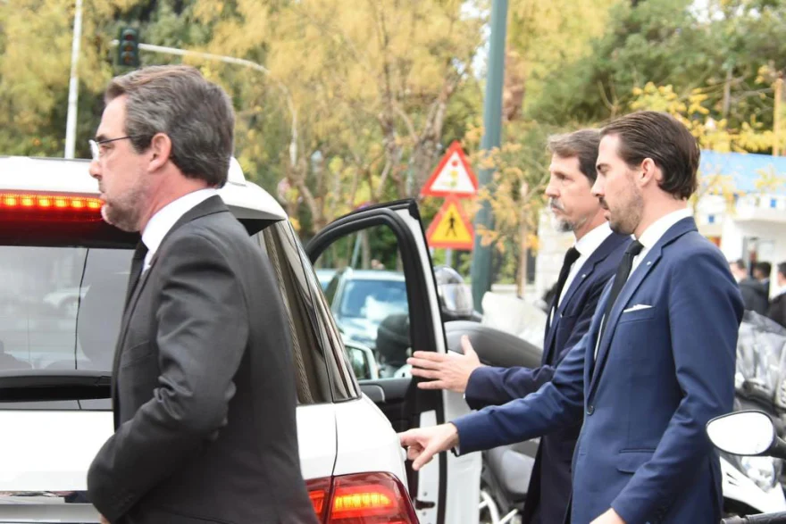 Οι γιοι του τέως βασιλιά Κωνσταντίνου, Παύλος, Νικόλαος και Φίλιππος, βρέθηκαν στο Μέγαρο Μαξίμου μετά την διϋπουργική σύσκεψη που πραγματοποιήθηκε νωρίς το πρωί για το θέμα της κηδείας.