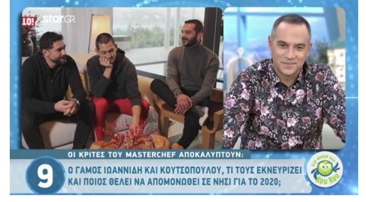 Οι τρεις κριτές αναφέρθηκαν σε όλα αυτά που περιμένουν και επιζητούν τη νέα χρονιά, αποκάλυψαν τι είναι αυτό που πραγματικά τους εκνευρίζει, κυρίως σε ό,τι αφορά ερωτήσεις του κόσμου που τους πλησιάζει ενώ στην ερώτηση “τι μπορεί να βρει κανείς στο ψυγείο τους” εκείνοι με ειλικρίνεια