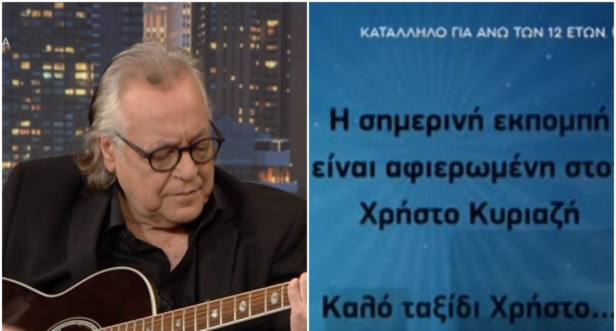 Ο Γρηγόρης Αρναούτογλoυ θέλοντας να αποχαιρετήσει τηλεοπτικά τον Χρήστο Κυριαζή, έκανε μια διαφορετική έναρξη για το The 2night show στην οποία αφιέρωσε την εκπομπή της Τετάρτης στον τραγουδιστή που έφυγε τόσο νωρίς.