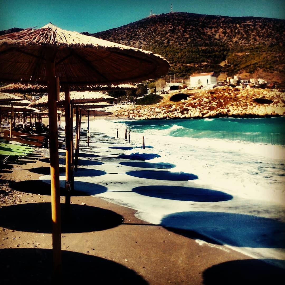 Η Γαλάζια Ακτή είναι ένα όνειρο, εκτείνεται σε αρκετά χιλιόμετρα, έχει και οργανωμένα κομμάτια, με beach-bars με όλα τα “καλούδια”, ενώ μπορείς να απομονωθείς και στην αριστερή της πλευρά, κάτω από τα πεύκα, και στη δεξιά, αν επιδιώκεις να μαυρίσεις σ’ ένα σχεδόν άγονο τοπίο, που θυμίζει κι ένα τσακ Κυκλάδες.