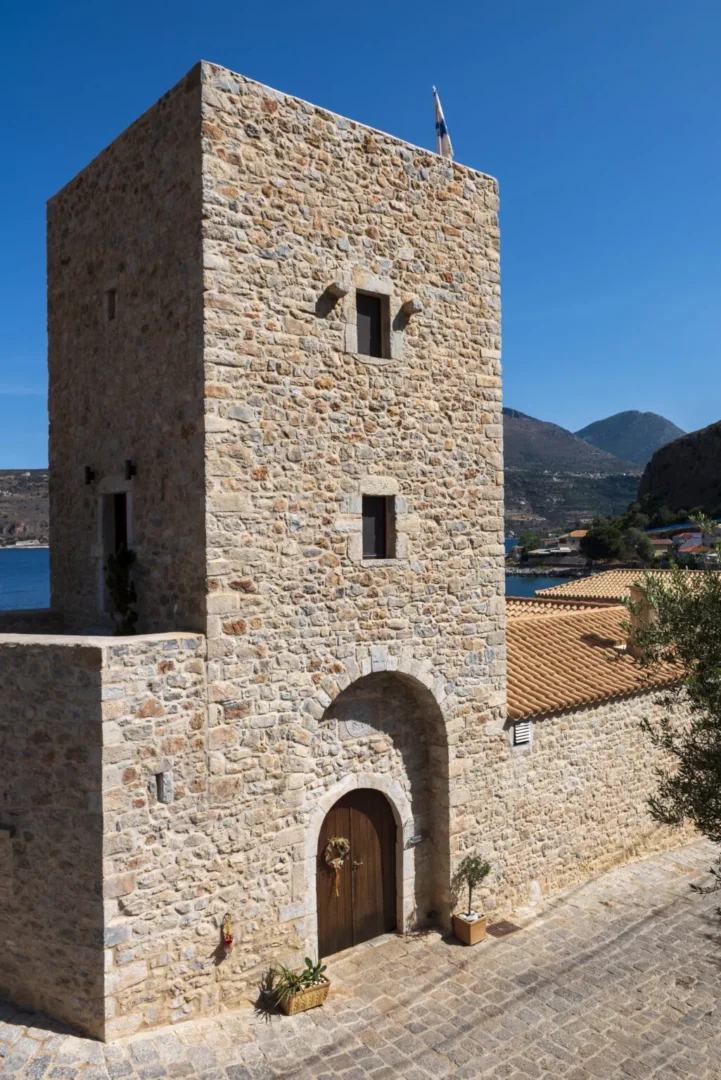 Η Μάνη και ειδικά το Λιμένι, είναι συνδεδεμένη απόλυτα με το όνομα της οικογένειας Μαυρομιχάλη, με την γνωστή συμβολή της στην Επανάσταση και τον σημαντικό ρόλο στην πολιτική ιστορία των πρώτων χρόνων ζωής του ελληνικού κράτους. Όλα αυτά τα γράφουμε γιατί στον κεντρικό δρόμο του οικισμού δεσπόζει ο Πύργος του Μαυρομιχάλη, ένα εντυπωσιακό κτίσμα, το πρώτο κομμάτι του οποίο, χτίστηκε τις πρώτες δεκαετίες του 18ου αιώνα, σταδιακά επεκτάθηκε και από το 2011 λειτουργεί ως boutique ξενοδοχείο. Επομένως αν το επιλέξετε, θα μείνετε σε ένα κατάλυμα που φιλοξενείται σε ένα σπίτι ζυμωμένο με την ελληνική ιστορία.