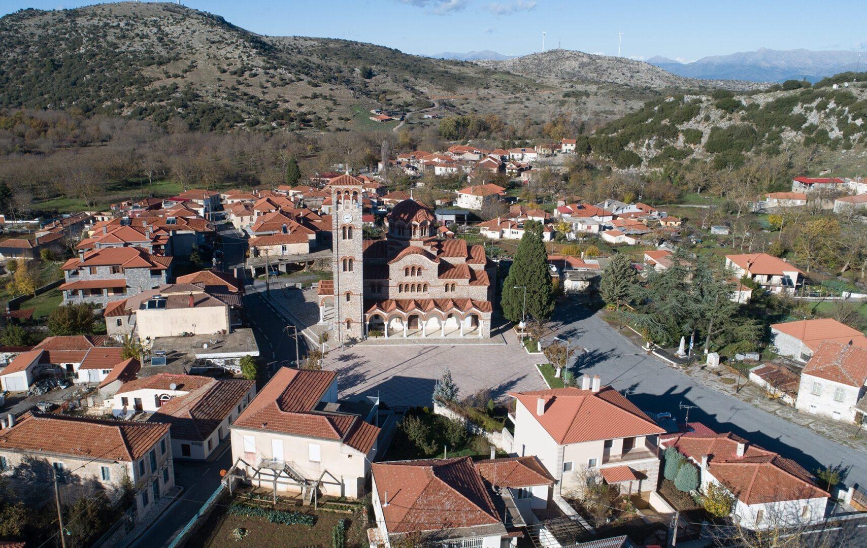Η κεντρική πλατεία στην Κερασιά με τον ιερό ναό Αγίου Παντελεήμονα