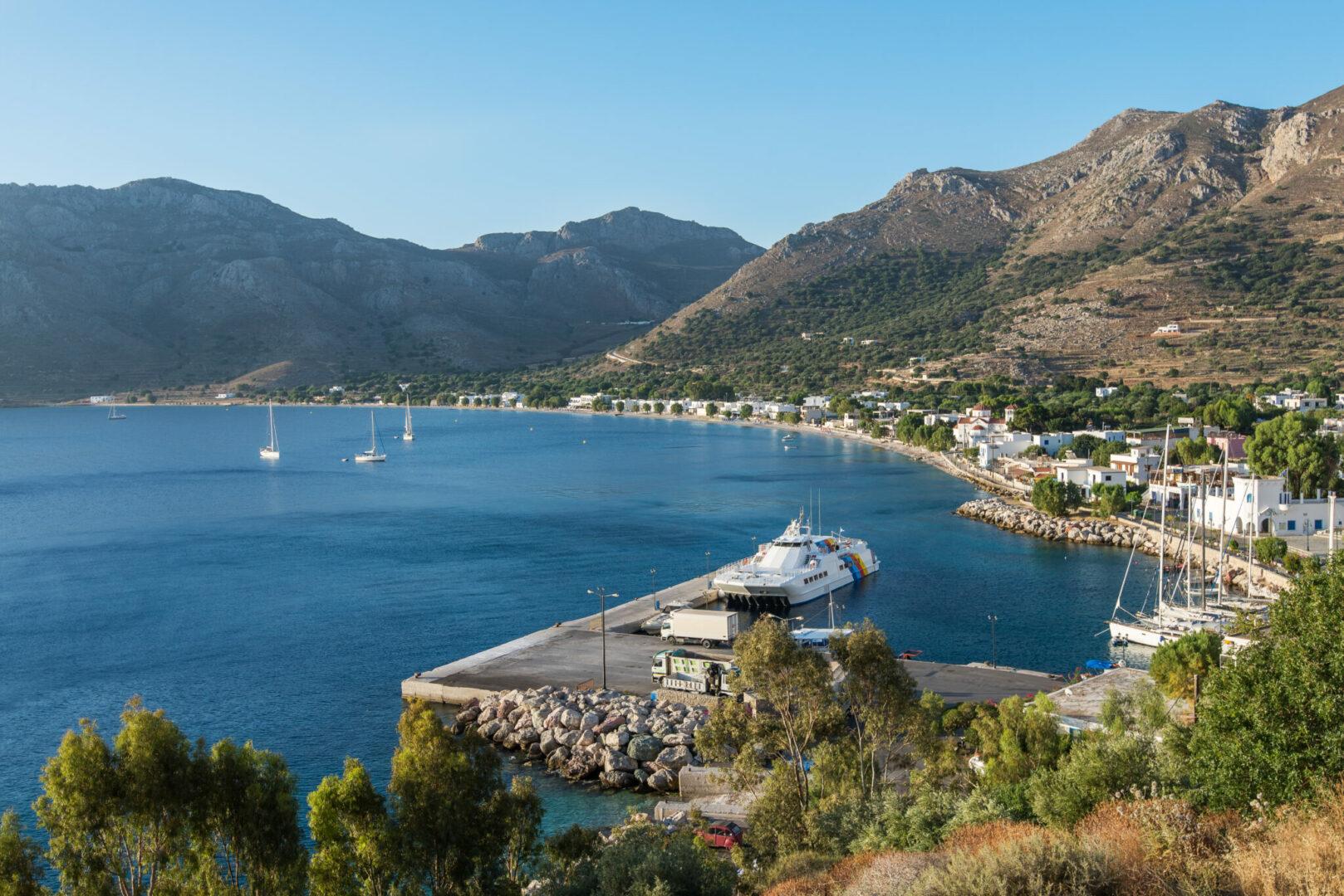 Το χωριό αναπτύσσεται στη νοτιοανατολική ακτή, στους πρόποδες των βουνών που υψώνονται πάνω από την παραλία, ενώ στο βάθος του ορίζοντα διακρίνονται το νησί της Σύμης και τα βουνά της γείτονος (Τουρκίας). Εδώ βρίσκεται το λιμάνι του νησιού που προσφέρει υπηρεσίες ελλιμενισμού για τα πλοία της γραμμής και τα σκάφη αναψυχής. Περιδιαβαίνοντας τους δρόμους του χωριού, θα συναντήσετε πολυάριθμα καταλύματα, ταβέρνες και καφέ με θέα στην παραλία. Για μπάνιο θα πάτε στη μεγάλη βοτσαλωτή παραλία του οικισμού (δίπλα στο λιμάνι) με τα ζεστά κρυστάλλινα νερά. Αν είστε τυχεροί, μπορεί και να κολυμπήσετε συντροφιά με τον περίφημο θαλασσοκόρακα που συχνάζει σ’ αυτή την παραλία!